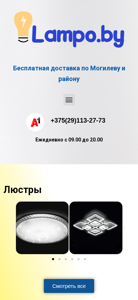 | AI-анализ | The web project lampo.by is dedicated to selling lamps and chandeliers (lusters and suspended lamps) with free delivery in Moгиelev and the surrounding region. The website's main sections include lusters, suspended lamps, spotlights, and track lighting systems. Users can browse different types of lamps and chandeliers using the menu, with options to view all available items in each category. The website is developed by webhouse.by. |