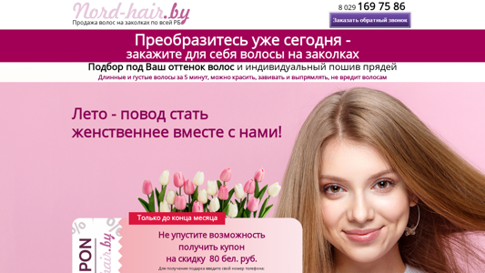 | AI-анализ | This website is an e-commerce platform selling natural human hair extensions on clips in Belarus. It offers various lengths and weights of hair paddings, ready-made hair sets, and mini-sets for customers' selection. The website promises free sewing of hair extensions for any weight and fast delivery within three days across Belarus. The homepage showcases discounted offers, including a 25% increase in the amount of hair received for the same price, and a coupon for an 80 ruble discount. The website also includes customer reviews, expressing satisfaction with the quality of the product and the delivery service. The domain name is nord-hair.by. |