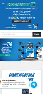| AI-анализ | The website is an e-commerce platform for selling Hofmann equipment for auto service in Minsk, Belarus, operated by an official dealer. The website offers various Hofmann equipment for sale, including balancing stands, alignment gear, and tire mounting machines. It also provides information on services such as conditioner maintenance, financing options, and delivery throughout Belarus. The website includes product details, pricing information, and the ability to add items to a shopping cart. The contact details for the dealer, including a phone number and email address, are provided for customer inquiries. The domain is registered as 'hofmann-minsk.by'. |
