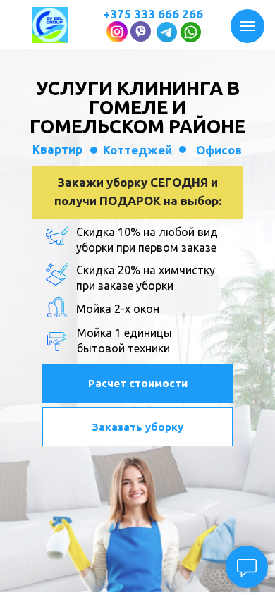 | SEO-описание | Профессиональный клининг в Гомеле: квартиры, офисы, уборка после ремонта. Выезд за 2 часа. Скидка новым клиентам. Оставьте заявку — наведём порядок без хлопот |