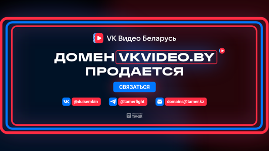 | AI-анализ | The web project "VK Видео" is a domain sales platform for the video hosting service "ВКонтакте" in Belarus and Kazakhstan. The offered domain names are VKVideo.BY and VKVideo.KZ. Visitors can contact the sellers via @duisembin, @tamerlight, or domains@tamer.kz for inquiries regarding the purchase of the domain names. The project also offers the sale of the Kazakhstan domain name, VKVideo.KZ. |