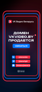 | SEO-описание | Продажа доменного имени для видеохостинга ВКонтакте в Беларуси (Белоруссии) и Казахстане — VKVideo.BY и VKVideo.KZ |