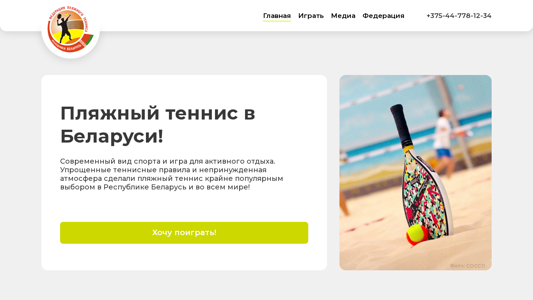 | SEO-описание | Официальный веб-сайт Федерации Пляжного Тенниса Беларуси. Получите актуальную информацию, изучите правила и запишитесь поиграть в пляжный теннис. |