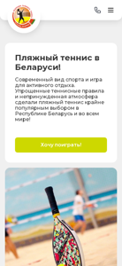 | AI-анализ | --- This website is the official one of the Belarusian Beach Tennis Federation. It provides current information, rules and an opportunity to register for playing beach tennis. The popular contemporary sport and game for active leisure features simplified tennis rules and a relaxed atmosphere. Beach tennis originated in Italy in 1978, with people using special plastic rackets without strings. The International Federation of Beach Tennis was founded there, with its first and current president being Giandomenico Belletini. In 2007, the International Tennis Federation officially recognized beach tennis and launched a world tour competition program. Since 2008, annual European Championships have been held under ITF auspices, and since 2009, World Championships. A team World Championship was introduced in 2012. Beach tennis combines professionalism and relaxation, with matches taking place on a spacious sand court ( |