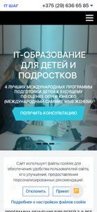 | AI-анализ | This online resource, titled "IT ШАГ" (IT Step), offers IT courses in Minsk with employment opportunities. The description mentions international programs for adult education in programming, Java and Python, front-end and back-end development, 1C, and various specializations including UX/UI design, Blender (3D for game-development), motion-design, data analysis, project management, business analysis, machine learning, targeted advertising, and DevOps engineering. IT Start, an online proficiency test, is also available for individuals. The website provides corporate and children's education, offering courses for kids aged 7-17, as well as a college program for 14-16-year-olds. IT Olympiads for kids and special educational projects are also mentioned. The contact details include phone numbers for general inquiries, children's education, and payment inquiries |