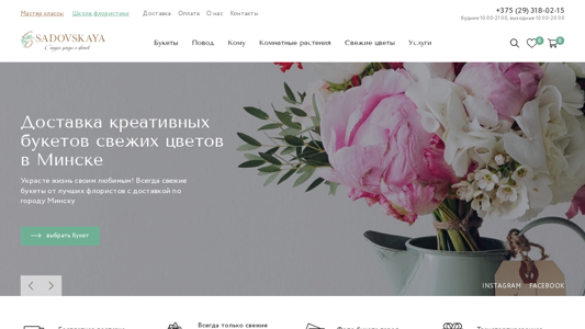 | AI-анализ | The portal Sadoskaya.by is an online flower shop offering author and creative bouquets, flower compositions, and houseplants for purchase. Customers can browse and buy bouquets, flower arrangements, and potted plants in respective categories. The website provides delivery services within Minsk and accepts payments online. Additionally, Sadoskaya.by offers floristry master classes and a floristry school. The website features sections for various occasions such as Mother's Day, birthdays, anniversaries, and romantic occasions. It also offers a selection of potted plants including palm trees, citrus plants, succulents, and bonsai. The website's content includes information about the company and contacts, as well as delivery and payment options. The domain sadovskaya.by is associated with the website. |
