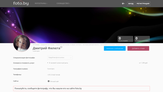 | SEO-описание | Фотографии в категории "Свадебная фотосъемка". Фотограф Дмитрий Филюта - выполняю следующие виды фотосъемок: love story, детская фотосъемка, свадебная фотосъемка. Работаю в городах: Солигорск,Минск,Слуцк |