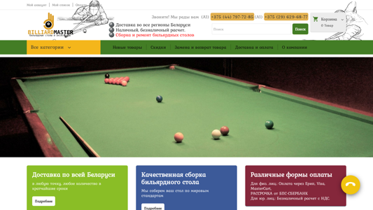 | Название / Заголовок | «БильярдМастер» интернет-магазин бильярдных столов и комплектующих к ним с доставкой по Беларуси - «БильярдМастер» |