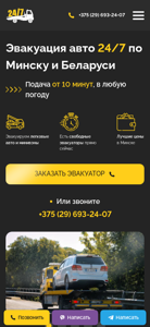 | AI-анализ | This online resource is a 24/7 auto evacuator service based in Minsk and the surrounding area. Users can ask questions online, or call the numbers +375 (29) 693-24-07 and +375 (44) 511-99-43 for assistance. The company offers various services including photo services, evacuation of cars and minivans, towing beyond MKAD, tire change, fuel delivery, and wheel alignment. The company has been in operation for over 6 years and has evacuated over 9600 vehicles during that time. The website provides information on how to quickly and affordably order an evacuator by calling one of the provided numbers or leaving a request on the site. The company uses specialized equipment, fittings, and its own fleet of trucks to load and transport vehicles safely to their |