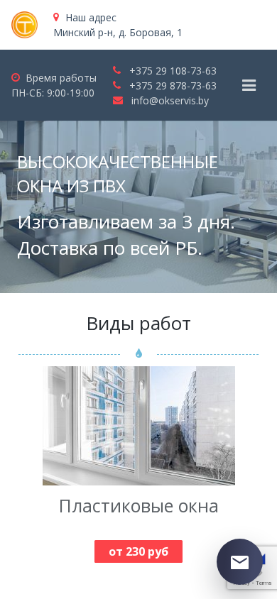 | AI-анализ | --- The portal remokna.by is dedicated to providing window and door services in Minsk, Belarus. It offers installation, repair, and sales of PVC windows of various complexities according to individual projects. The website also provides services for French windows, balcony frames, and PVC doors. Contact information includes two phone numbers and an email address for inquiries or to place orders. The business is located in the Minsk region, at the address of Borovaya, 1. Operating hours are from 9:00 to 19:00, Monday through Saturday. Services offered include window and door repairs, replacement of handles, hinges, and fittings, insulation installation, and child safety protection on windows. Prices for different products and services can be obtained by submitting a request for a call. The website lists various types of windows and doors available, including those |