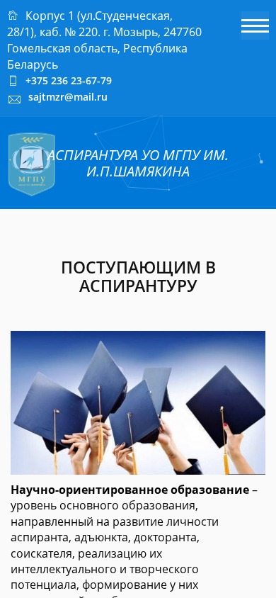 | Название / Заголовок | Аспирантура | МГПУ им. И.П.Шамякина |