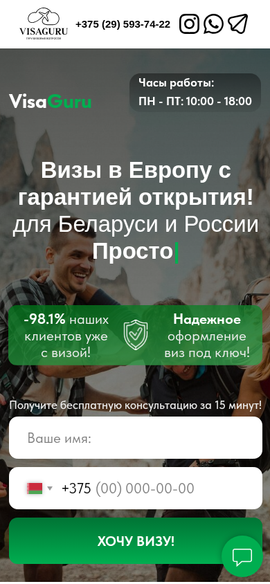 | AI-анализ | The website is a Belarusian visa center that offers visa application services for various countries including the USA, Europe, and the UK. The website assures quick and stress-free processing with individualized customer approach and document handling. The offered services include visas for work and tourism, with a guarantee of successful visa issuance for Belarusian and Russian citizens. The website provides a free consultation and operates from Monday to Friday, 10:00 AM to 6:00 PM. Contact information includes a phone number in Belarus, and the site offers a join now feature. The website also features a FAQ section and guarantees visa issuance for those who seek confidence and aim to avoid visa rejections. |