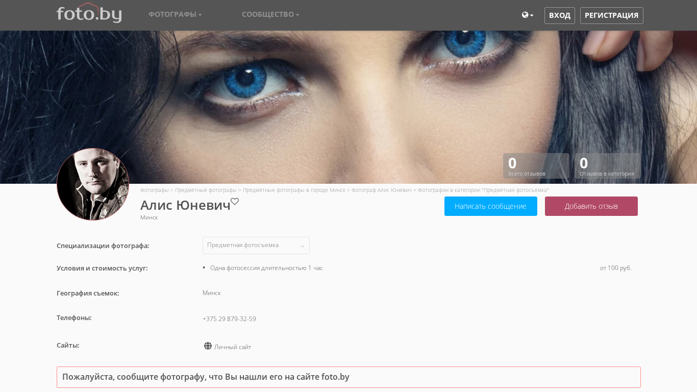 | SEO-описание | Фотографии в категории "Предметная фотосъемка". Фотограф Алис Юневич - выполняю следующие виды фотосъемок: предметная, рекламная, портретная, 3D, фото 360. Работаю в городах: Минск, РБ и другие города. |