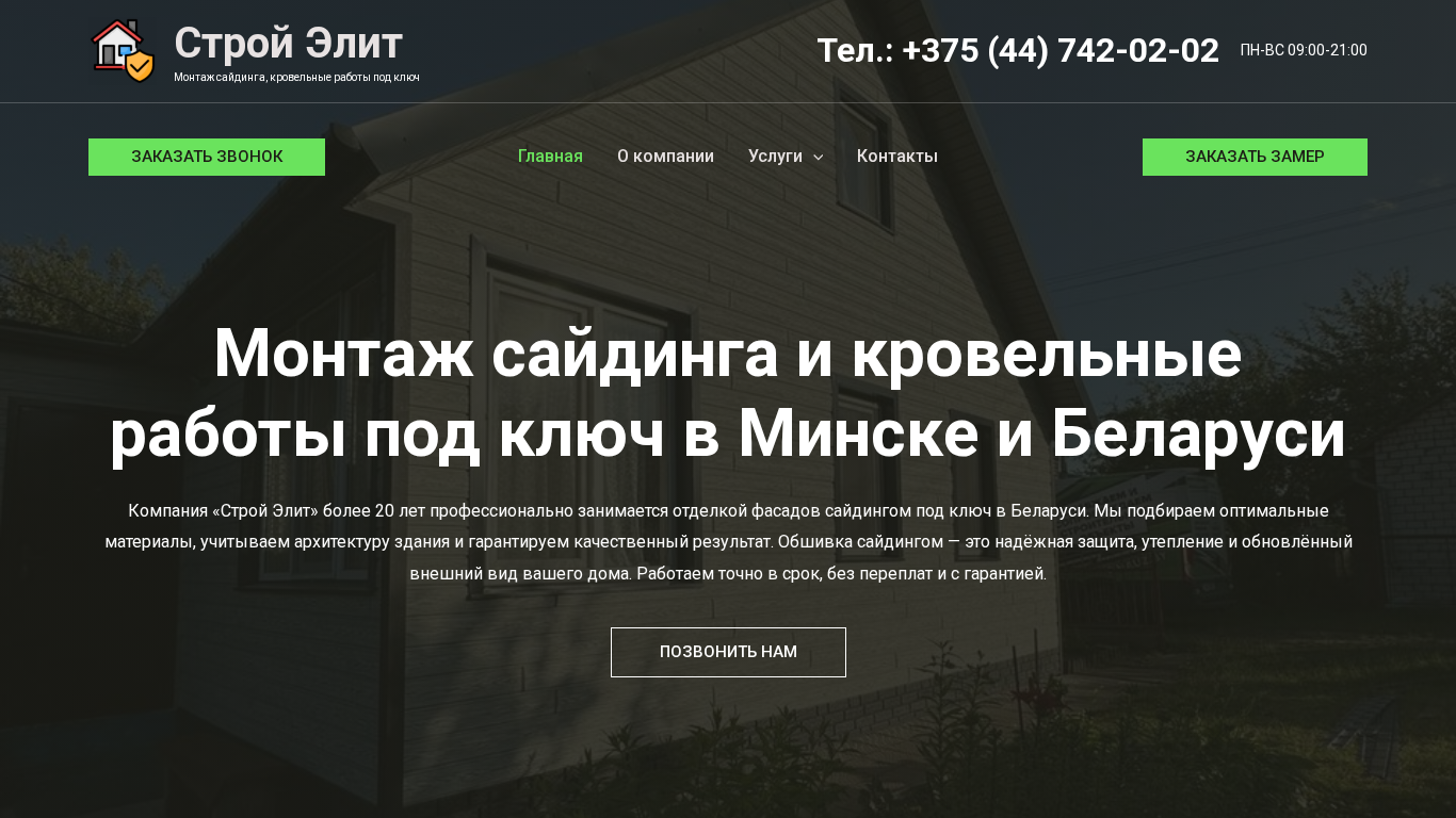 | SEO-описание | Более 15 лет компания Строй Элит занимается отделкой сайдингом и монтажом кровли под ключ во всех городах Беларуси |