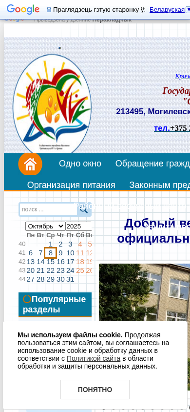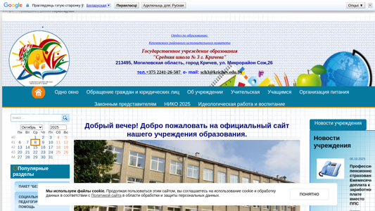 | AI-анализ | This online resource is a website for Middle School No. 3 in Krichev, Belarus. The title of the website is "Средняя школа № 3 г. Кричева" (Middle School No. 3 in Krichev). The most frequently used keywords on the website include "школа" (school), "учреждения" (establishments), "класс" (class), "средняя" (middle), "кричева" (Krichev), and "работы" (work). The website also contains information about the school's schedule, news, and various educational programs. The top words on the website are "2025", "образования" (education), "график" (schedule), and "новости" (news). The website is primarily written in Belarusian, but |
