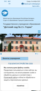 | AI-анализ | This online resource is a Belarusian language website for a kindergarten located in the city of Gorki. The title of the website is "Детский сад № 2 г. Горки" which translates to "Kindergarten No. 2 of Gorki" in English. The description of the website includes the phrase "Выбраць мову Беларуская" which means "Choose the Belarusian language" in English. The keywords associated with the website include words related to education, kindergarten, and the city of Gorki. The top words on the website include numbers from 2025, and the words "читать" (read), "далее" (further), and various city names. The domain name of the website is "sad2.gorki.edu.by". |