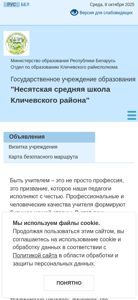 | AI-анализ | This online resource is the official website for Nesyatskaya Srednya Shkola (Nesyatsk Secondary School) located in Klichevsky District, Belarus. The title of the website reflects its name and location. The description section mentions the use of cookies, which is a common practice for many websites. The keywords and top_words indicate that the website contains information about the school, its schedule, administrative procedures, contacts, and various educational initiatives, including proactive measures for safety and security. The website also appears to offer electronic forms and resources for parents and students, as well as information about the school's history, library, and pedagogical staff. The domain name suggests that this is a government-run educational institution in Belarus. |