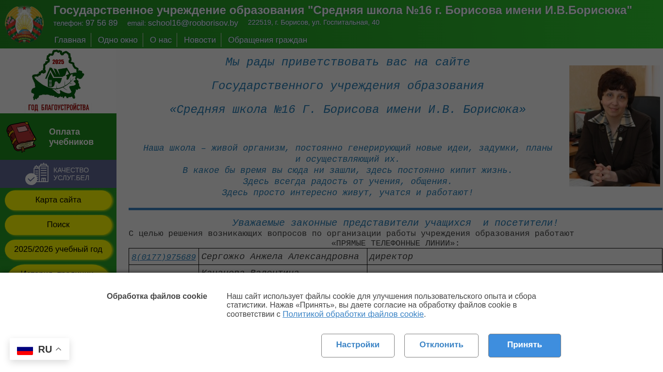 | Название / Заголовок | ГУО "Средняя школа №16 г. Борисова имени И.В.Борисюка" - Официальный сайт |