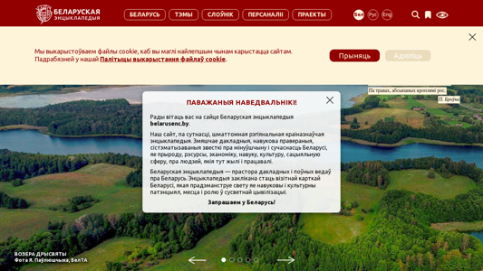 | AI-анализ | --- The portal Belarusian Encyclopedia (belarus.belarusenc.by) is an electronic encyclopedia providing comprehensive and accurate information about Belarus, its history, resources, economy, science, culture and social sphere, as well as people. The content of the encyclopedia is produced by experts with high qualifications in academic research. Keywords: Belarus, encyclopedia, history, resources, economy, science, culture, social sphere, people. The website uses cookies to improve the user experience. Please note that by using our site you accept our Cookie Policy and Privacy Policy. Welcome to Belarusian Encyclopedia belarusenc.by. Our site is a comprehensive regional encyclopedia about Belarus, offering a wealth of knowledge about its past and present. The portal aims to be a valuable resource and showcase the scientific and cultural |