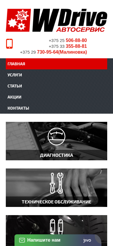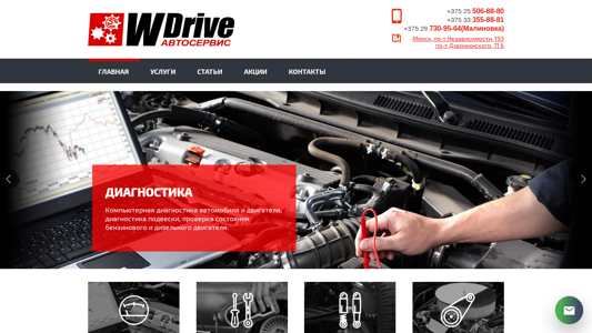 | SEO-описание | Автосервис (СТО) WDrive: диагностика, техническое обслуживание и ремонт автомобилей в Минске. Наши услуги и сервис. |