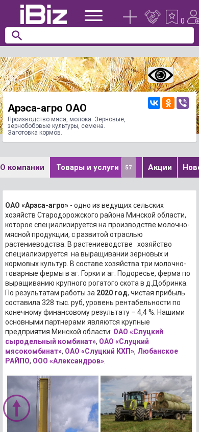 | AI-анализ | The website of Aras-agro OAO is dedicated to the agricultural production of meat, milk, zernovyie (grain) and zernobobovyie (legume) cultures, and the collection of fodder crops in Belarus. The address is given as 222920, , Gorki ag., Schoolyard Street, 2. The site includes a scheme for travel, contact telephone numbers, and the address of Aras-agro OAO. The company specializes in livestock farming and crop cultivation, with three dairy farms located in the villages of Gorki and Podoresie, and a cattle farm in Dobrinka. The financial results for 2020 showed a net profit of 328,000 rubles and a profitability rate of 4.4%. Major partners include large businesses |