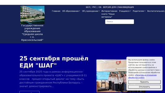 | AI-анализ | The web project "Главная - Государственное учреждение образования "Средняя школа г.п. Красносельский" (krssh.by) is a government educational institution website dedicated to "Средняя школа г.п. Красносельский" in Belarus. The website provides information on general and special education, methodological support, teacher accreditation, normative documents, canteen schedule, library, innovative projects, and anti-corruption activities. Keywords associated with the website include 'education', '2025', 'спортивный', 'года', 'волковысского', 'праздник', 'сентября', 'всех', 'учебного', 'шаг', 'иностранных', 'языков', 'недели', 'красносе |