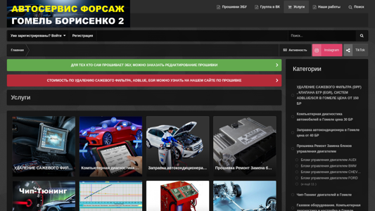 | AI-анализ | <aside> <p> <strong>Note:</strong> The description is based on the website's meta data and does not reflect the actual content or quality of the website. </p> </aside> This website is titled "Услуги - Автосервис "ФОРСАЖ" в Гомеле" and is about auto services in Gomel, Belarus. The most frequently used words on the site include "гомеле" (Gomel), "удаление" (removal), "цена" (price), "эбу" (EBU), "управления" (management), "диагностика" (diagnostics), "ремонт" (repair), "услуги" (services), "сажевого" (diesel), "фильтра" (filter), |
