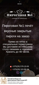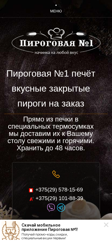 | AI-анализ | This online resource, titled "ПИРОГОВАЯ №1" (Pirogovaia No.1), offers customers the opportunity to order various types of closed pies for delivery. The pies are freshly made in the oven and transported in special thermal containers to ensure they remain warm and tasty upon arrival. They can be stored for up to 48 hours. The website provides a menu with options for scone-based or pastry-based pies, as well as pizza, hachapuri, cheesecake, and beverages. The pies come in different sizes and include fillings such as spinach and cheese, chicken with vegetables, and meat with mushrooms, among others. The website also includes contact information and hours for placing orders, which can be done for the same day until 17:00 on Saturdays and Sundays. The |