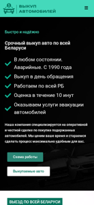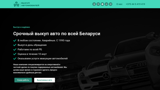 | AI-анализ | --- The web project "Выкупим авто — Выкуп авто в любом состоянии" (Vykupimavto.by) is a platform specializing in the fast and reliable purchase of used cars across Belarus. With over 30 years of experience, the company provides a three-step process: contact them via phone or online form, meet with their representative for evaluation, and conclude the sale and receive payment. The website offers services in various communication channels, including Viber, Telegram, WhatsApp, and Instagram. The platform values customers' time and aims to make the process as convenient as possible. The website features a form for users to leave a request for car purchase. It requires the user's name, contact information, car make, model, and year. The form must be filled in with JavaScript enabled in the browser. The platform's team of professional appraisers assess the car |