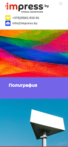 | AI-анализ | language: ru type: website The web project impress.by is a printing company based in Minsk, Belarus, offering advertising and promotional products at affordable prices. The company provides design services and quick production of various items including banners, badges, calendars, catalogs, folders, flyers, labels, notebooks, pens, posters, stickers, t-shirts, and various types of bags. They also offer external advertising solutions such as billboards, banners, and roll-up stands. The website provides detailed information on their product range and contact details. |