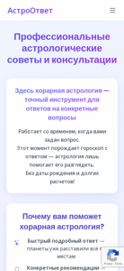 | AI-анализ | The title of the website is "Астрологические ответы на важные вопросы" (Astrological Answers to Important Questions) and it offers astrological consultations and answers to specific questions. The description states that it provides professional astrological responses that are detailed, quick, and concrete. The website uses horarial astrology, which does not require a birth date or lengthy calculations to provide answers. Instead, the astrologer uses the moment the question is asked to create a horoscope and interpret the stars' positions. The website emphasizes confidentiality, with the user's question remaining between them, the astrologer, and the stars. The astrologer's name is given as Vadim Cherkasov, and the cost of a consultation is 75 Belarusian rubles, with a pre-payment of 35 rubles |