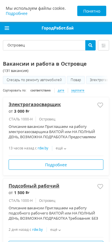 | SEO-описание | Ищете работу в Островце (Гродненская область)? На нашем сайте Вы найдете более 131 свежей вакансии от прямых работодателей. Быстрый и удобный поиск вакансий с ГородРабот.бай |