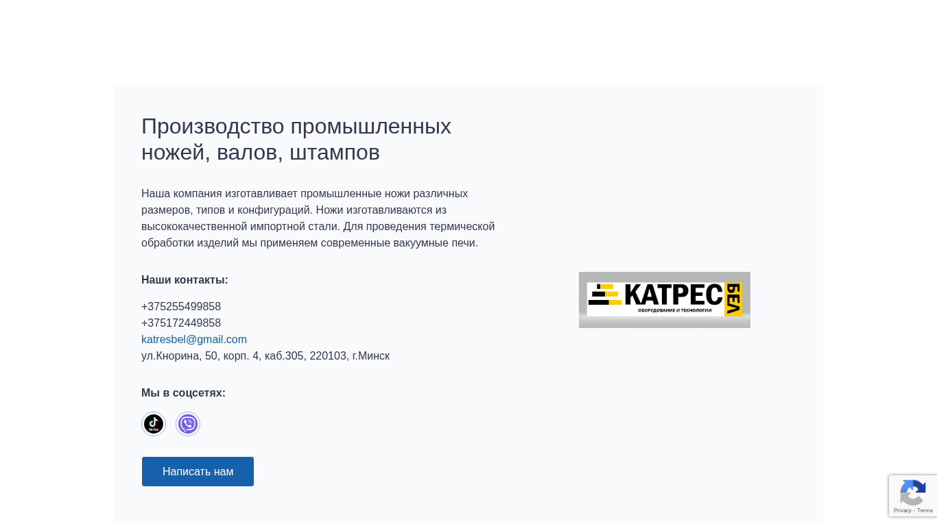 | Название / Заголовок | Производство промышленных ножей, валов, штампов |
