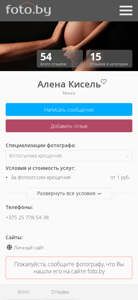 | AI-анализ | The portal is a photography website by Alena Kisel, based in Minsk, Belarus. The site focuses on photography services for various categories, including 'Photo Shooting for Baptisms'. Alena works as a child and family photographer, as well as a photographer for baptisms in Minsk. The website provides information on the photographer's specializations, pricing, and contact details. The main page displays a catalog of photographers, but with the switch to a different setting, the community of photographers becomes the featured content. The site offers a blog, a section for announcements, and a contact form to write messages or leave reviews. The photographer's portfolio includes various genres like children, families, and baptisms. The site is available in both Russian and Belarusian languages. The domain for the website is alena-kisel.foto.by. |