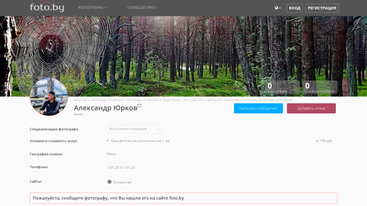 | AI-анализ | The web project is a photography portfolio for Alexander Yurkov, a photographer based in Minsk, Belarus, specializing in interior photography. The website displays his works in the "Interior Photography" category, featuring shots of kitchens and apartments. He operates as a freelance interior photographer and mebel photographer, offering special pricing for repeat customers. The photography session for a kitchen or apartment takes between 15 to 25 minutes. Keywords associated with the website include interior photography, Minsk, photographer, Alexandr, Yurkov, categories, photography, photography session, prices, and conditions. The website also includes a community section for photographers and a blog. The website was visited on 23.11.2024, with no reviews in the interior photography category. The photographer's contact information and services can be found on the site, along with a personal website and social media |