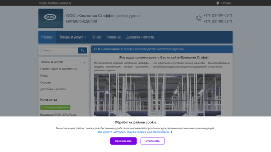 | AI-анализ | The web project "ООО «СВМ-Пrom»" is an e-commerce platform for the sale of metal storage solutions and related services. The company, "ООО «СВМ-Пrom»," provides contacts, products, and services including metal shelving, workbenches, metal garment closets, construction barriers, and portable shelving. The website features detailed product presentations, pricing, and contact information. The company can be reached at +375 (29) 384-61-71 or +375 (33) 382-61-71, and is located at ул. Заводская, д. 29Д, Фаниполь, Беларусь. The domain is sklad-super.by. |