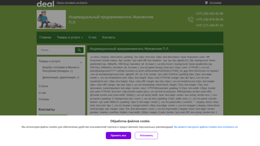 | AI-анализ | The portal dezotriad.deal.by is a business website of Individual Entrepreneur Muskovozchik P.L. based in Minsk, Belarus. The website offers contacts, products, and services related to pest control in Minsk and the Republic of Belarus. The main sections of the website include "Desinsektsia, deratizatsia" (Pest Control) and "О нас" (About Us). The website also provides contact information such as phone numbers for three different contact methods. The website's design features a green background with a panel displaying a large image of a pest control service in action. The website is optimized for keywords related to pest control and individual entrepreneurship. The top words on the website include "375", "display", "width", and "translatey", among others. The website has received |
