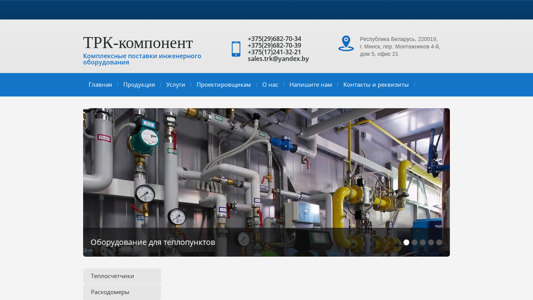 | Название / Заголовок | ТРК-компонент-Комплексная поставка инженерного оборудования производства РБ, РФ и Европы. Заводские цены и бесплатная доставка по РБ. |