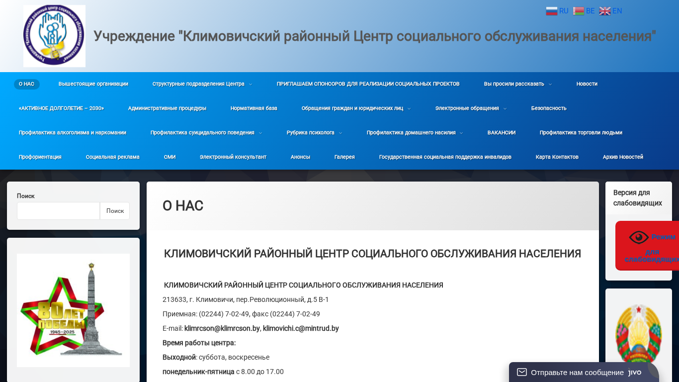 | Название / Заголовок | Учреждение "Климовичский районный Центр социального обслуживания населения" |