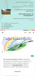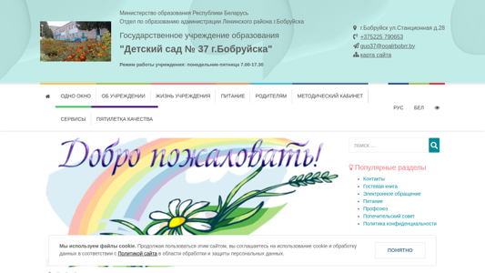 | AI-анализ | The web project "Детский сад № 37 г.Бобруйска" (Kindergarten No. 37 in Bobruisk) is a state educational organization under the Ministry of Education of the Republic of Belarus in the Leninsky district of Bobruysks city. The kindergarten's website provides information about its management, structure, and team, as well as details on its operating hours, administrative procedures, and contact information. The website features sections for parents, including a schedule for the kindergarten's leadership and information on how to apply and enroll children. It also includes sections on educational policies, nutrition, and various documents such as normative legal acts and application forms. The site offers an electronic application system and contact details for higher-level organizations and emergency services. Additionally, there is a situation support section for disabled individuals, with dedicated phone numbers referred to as "hot |