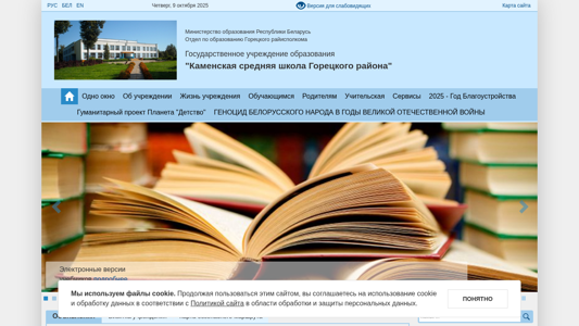| AI-анализ | The web project "Каменская средняя школа Горецкого района" (Kamennaia Sredniaia Shkola Goretskogo Raiona, Kamenska Secondary School of Goretsk District) is an educational institution based in Belarus. The title of the website is given in Belarusian and translates to English as "Kamenka Secondary School of Goretsk District". The description tag contains the keywords "школа", "учреждения" (institution), "образования" (education), "горецкого" (Goretsk), "района" (district), "каменская" (Kamenka) and "средняя" (secondary). The most frequent words on the website are "2025" (possibly a year), "читать" (to read), |