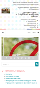 | AI-анализ | The portal "Детский сад 12 г.Шклова" is a website belonging to the State Educational Institution "Children's Garden No.12" located in the village of Dobreyka, Shklovsky district, Belarus. The website is operated by the Shklovsky district education office under the Ministry of Education of the Republic of Belarus. The portal provides information about the kindergarten, its administrative hours, admissions procedures, contacts, and various services. It includes sections for educational documents, an electronic application system, and information on vacancies and fees. The website also features news, a contact directory, a map of the kindergarten, and a photo-video gallery. It is important to note that the kindergarten offers paid educational services. The portal is accessible through a single-page layout and includes links to various regulatory bodies and organizations. It also provides information |