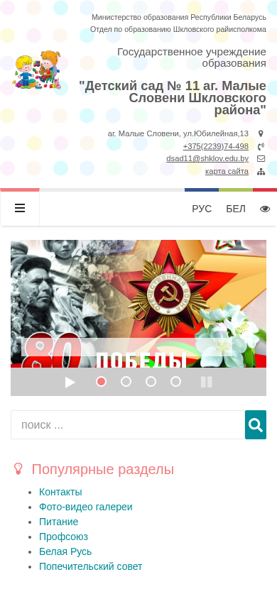 | Название / Заголовок | Детский сад 11 г.Шклова |