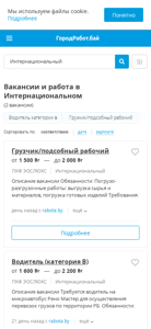| AI-анализ | The website "Internatsionalnyij.gorodrabot.by" is a job search platform that offers numerous vacancies directly from employers. Users can quickly and easily find jobs by using the services provided by GorodRabot.by. The website features a section for vacancies in the International company, displaying two current job openings. One job opening is for a loader/helper with responsibilities including loading and unloading of materials, and the other is for a driver with a category V license for cargo transportation. Both positions offer official employment, a five-day work week, and salaries ranging from 1,500 Br to 2,200 Br. The website also provides an option to subscribe to job listings, look for remote work opportunities, or search for jobs in nearby cities. |