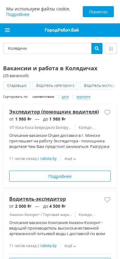 | SEO-описание | Ищете работу в Колядичах? На нашем сайте Вы найдете более 25 свежих вакансий от прямых работодателей. Быстрый и удобный поиск вакансий с ГородРабот.бай |