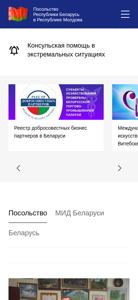 | AI-анализ | --- This website is the official portal of the Embassy of the Republic of Belarus in the Republic of Moldova. It provides extensive information about the embassy's services, including consular affairs, visa issues, and diplomatic relations with various countries. Key topics include the address and working hours, history, news, and various consular procedures, such as obtaining documents, registering marriages, and legalizing documents. The site also covers information on visa-free travel, consular functions abroad, and administrative procedures. Additionally, there is a section dedicated to Belarusian exports and information for investors, as well as details on the country's industrial parks and free economic zones. The site is primarily available in Russian and Belarusian languages. |