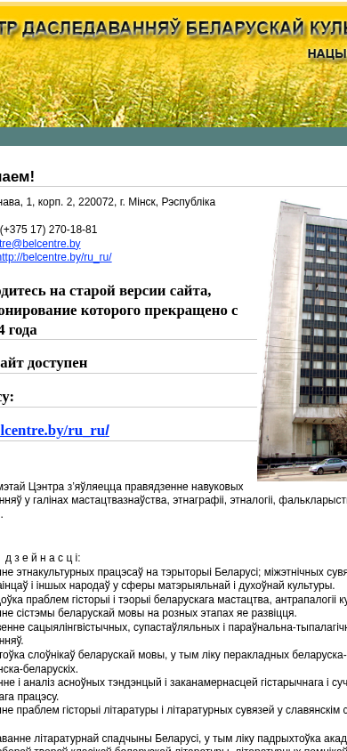 | AI-анализ | This online resource, titled "Запрашаем!" (Inviting!), is a Belarusian academic center focusing on research in the fields of folklore, ethnography, ethnology, folkloristics, language, and literature. It offers studies on ethnic cultural processes in Belarus, interethnic relations between Belarusians, Russians, Ukrainians, and other ethnic groups in the material and spiritual cultural spheres. The center also conducts research on problems of the history and theory of Belarusian art, anthropology of culture, the Belarusian language system at various stages of its development, and sociolinguistic, comparative, and other typological studies. It also provides research on dictionaries of the Belarusian language, including translation dictionaries between Belarusian and other Slavic languages. The center explores and analyzes the foundational |