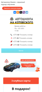 | AI-анализ | This online resource is an automobile driving school in Gomel, Belarus, offering category B driving instruction. It positions itself as a serious educational establishment with a modern technological base, a well-equipped fleet, and an experienced team. The website provides information on the school's schedule, courses, pricing, and contact details. Additionally, it offers promotional items such as a free video recorder and club membership benefits including access to a fitness center and a spa zone. The VIP program includes theory classes, on-road driving, and a practical exam plus. The instructor picks up students at a convenient location in the city and drives them to the driving range, and the lessons can be scheduled at the student's convenience. Free study materials are provided, and students can retake all tests and exams at no additional cost. The school also offers additional theory lessons and a yearly membership to the automobile parking lot with a |