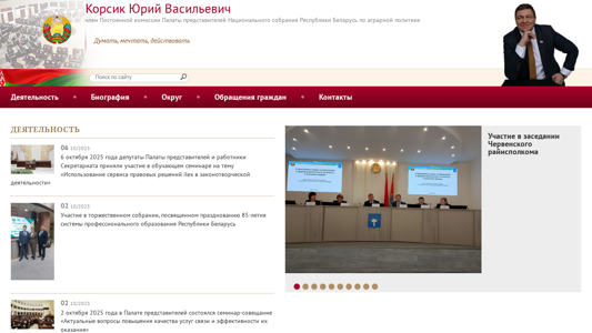 | AI-анализ | The web project is dedicated to the activities of Deputy Korsik Yuury Vasilievich, a member of the Permanent Commission of the Chamber of Representatives of the National Assembly of the Republic of Belarus on agricultural policy. The website provides information on his legislative, international, community, and other activities. Users can find reports on his work, his biography, contacts, and news. The domain name is korsik.house.gov.by. |