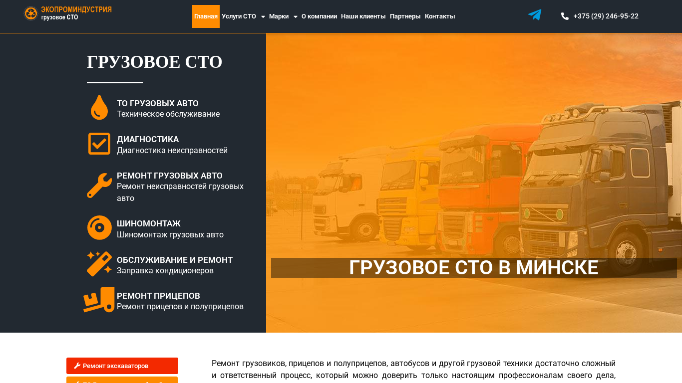| SEO-описание | Грузовой автосервис предоставляет услуги по ремонту и обслуживанию грузовой техники. Быстро, качественно и по доступным ценам! Звоните +375 29 362-47-87 |